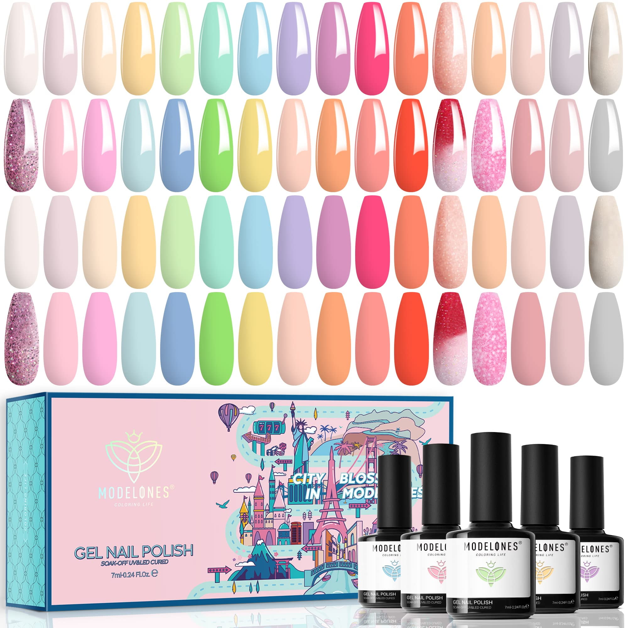 Modelones 36 Pcs Gel Nail Polish Kit With Bond Primer Matte Glossy Top Base Coat Pastel Bright Color Gel Polish Set Soak Off Nail Polish Glitter Gel Nails Starter Manicure Kit Gift